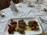 Aber das sind noch nicht alle Schätze unserer Speisekarte. Unsere "Secondi Piatti" (Hauptgerichte) bieten etwas für jeden Geschmack. Ob Sie das "Melenzane ripieni di carne e ricotta gratinata e insalata di pomodoro" wählen - mit Hackfleisch gefüllte Aubergine, gratiniert mit Schafskäse und Tomatensalat, oder "Spezzatino di agnello al vino bianco e limone con olive patate" - Lammragout in Weißwein, Zitrone, Oliven, Tomaten, Thymian und Kartoffeln - unsere Gerichte sind ein wahres Fest für die Sinne.